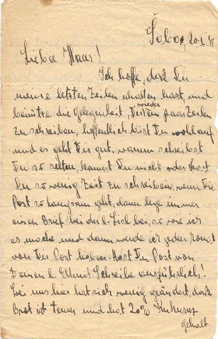 Letter from Egon Aufrichtig in Sabac 20 January 1941