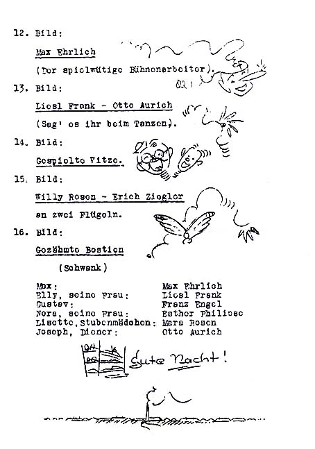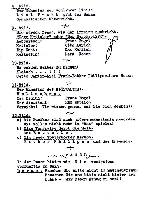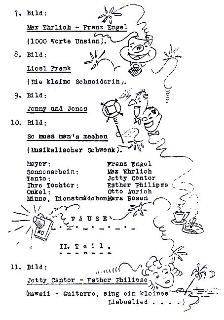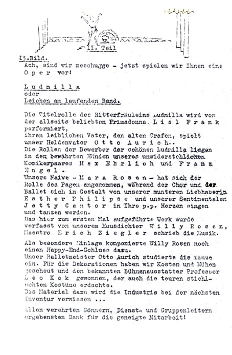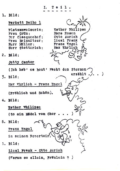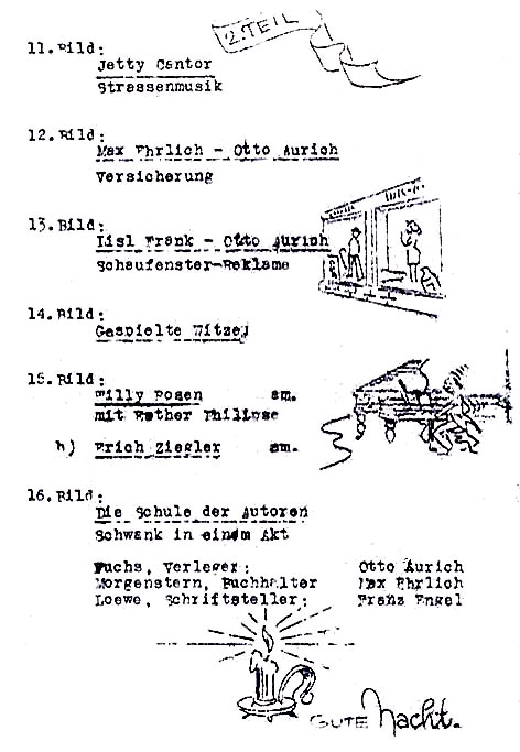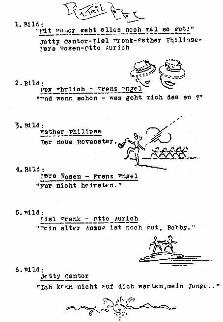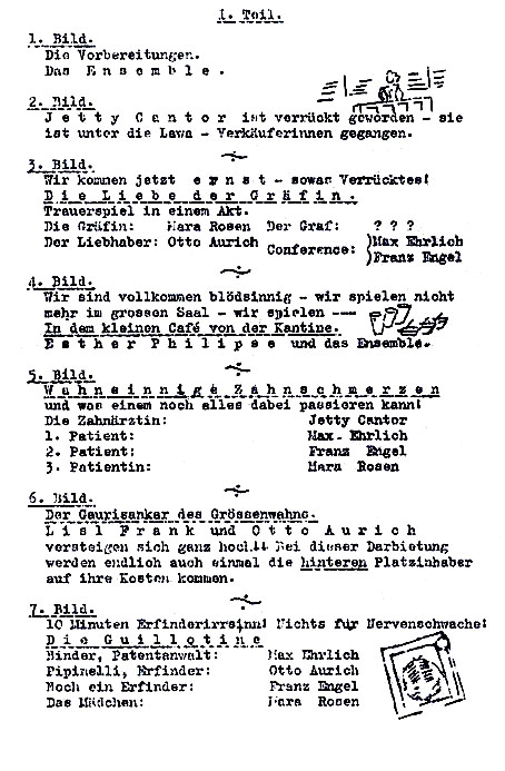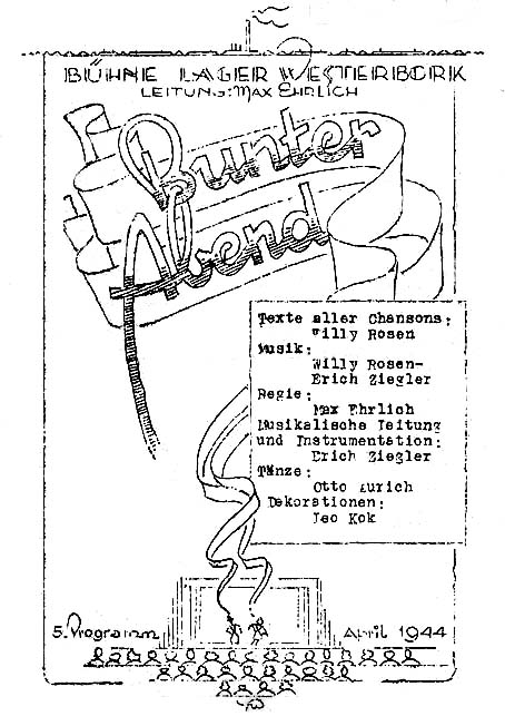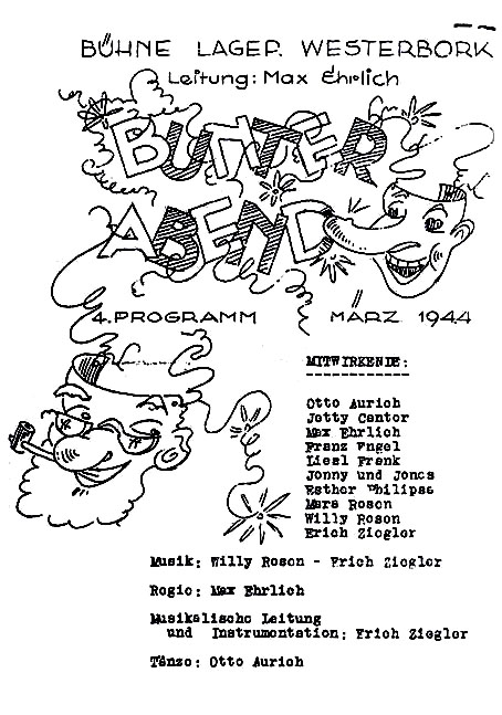 Also imprisoned in Westerbork at this time was celebrated German-Jewish actor, comic and cabaret/recording artist Max Ehrlich who formed the Kamp Westerbork Theater Group. With himself as director, this was a cabaret troupe that consisted of many well known artists and performers from Vienna, Berlin and the Netherlands. During its 18 months existence, the troupe staged six productions, three of them featuring the talents of Otto and Alice.